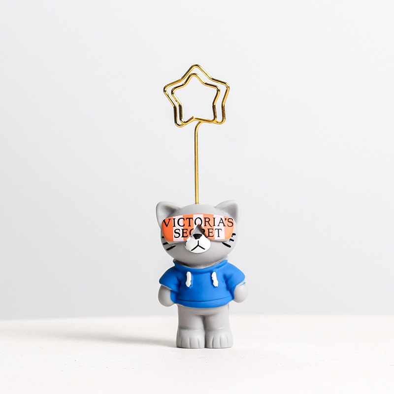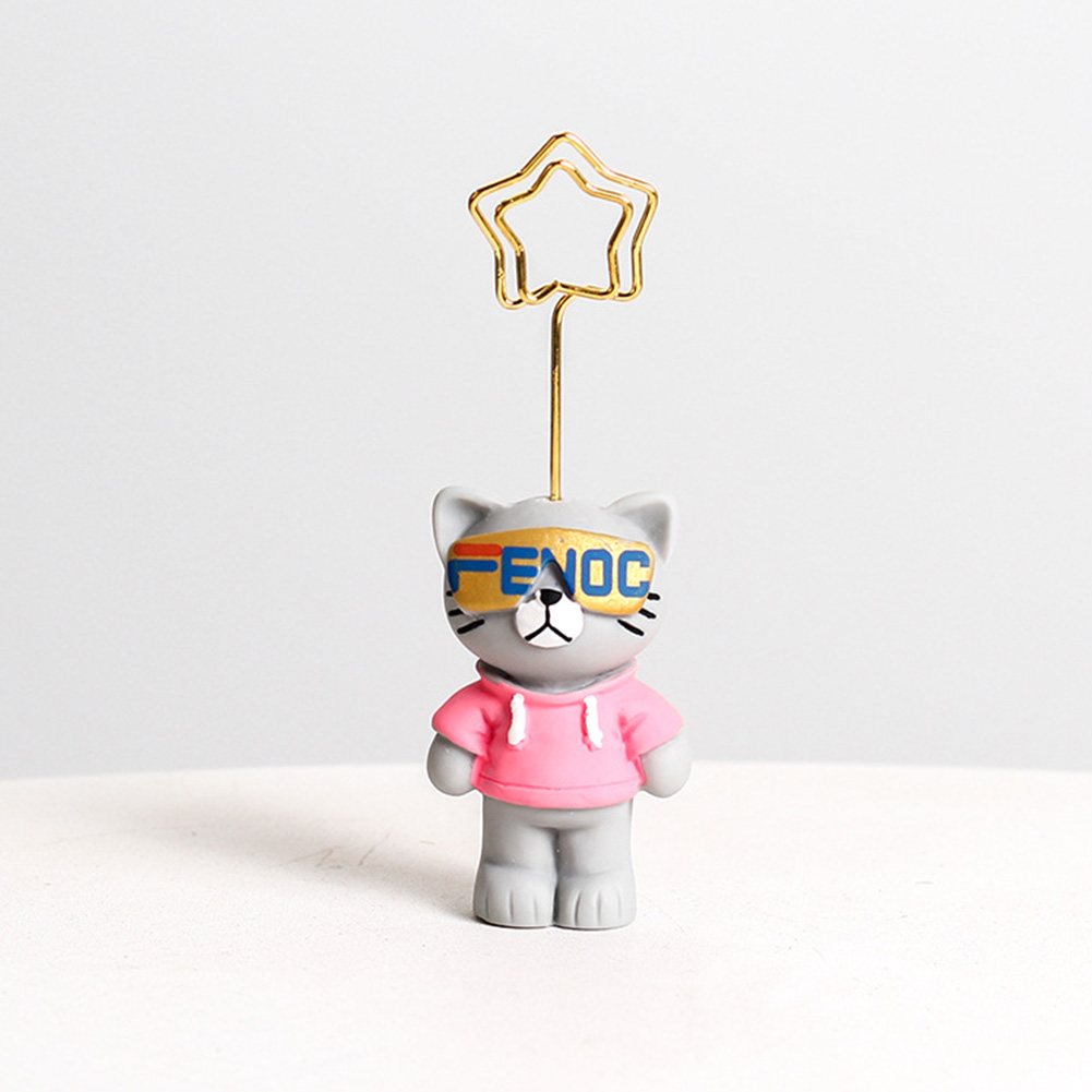 Cute Cartoon Note Holder Clip Card Desktop Message Folder Photo Sunglasses Cat Resin Ornament Crafts cat pink