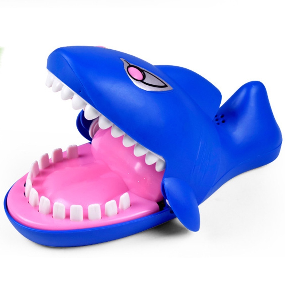 Made of high quality plastic: non- toxic, low smell, durable and safe for kids to play. Classic biting hand toy: vivid color, cut snappy shark and bulldog design. Usage: Special big jaws will shut down when you press the tooth button, can test your reflexes, very fun and exciting. Design: The eyes of the shark can light up and make a evil laugh when you press the tooth button, making it more lively and interesting. Size: dog: 17x13.5x8 cm, shark: 22x12.5x9.5 cm.