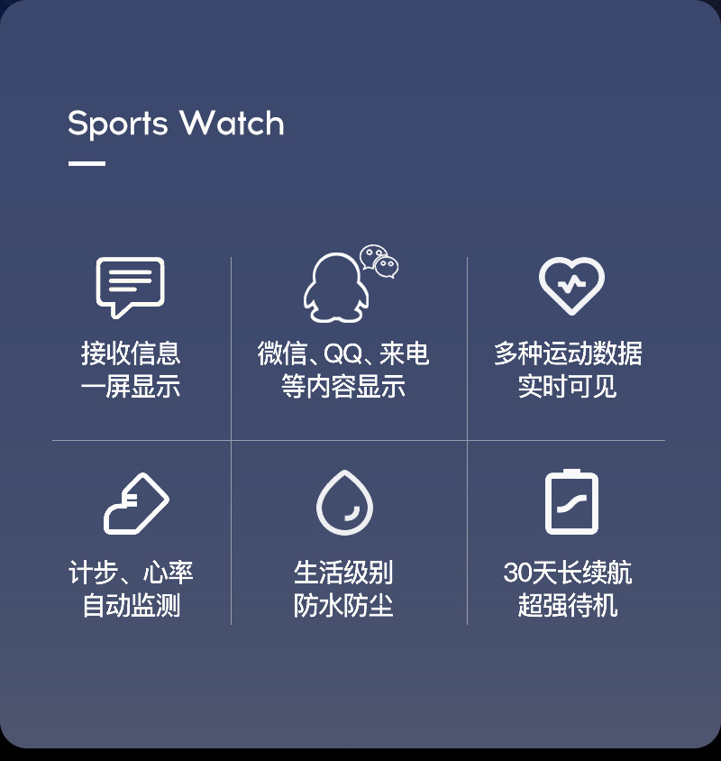 100% brand new and high quality.Adjustable wristband for comfortable wear experience.Can receive FaceBook, Whatsapp, QQ, WeChat, SMS and other message notification, can quickly process information.Perfect gift for your friend and family.