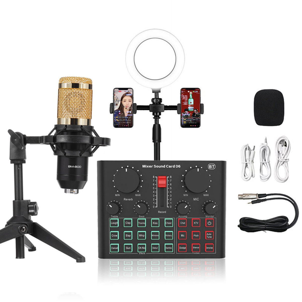D6 bluetooth USB Sound Card Mixer Suit with BM800 Condenser Microphone BG16 Fill Light for PC Computer Game Live Broadcast Meeting Tiktok – A