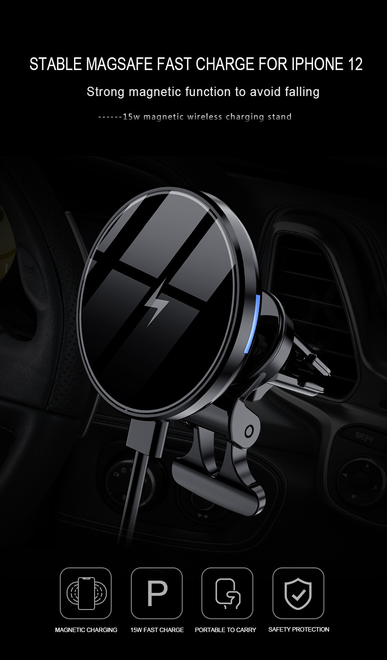 D7 Magnetic Car Wireless Charger 15w Fast Charging Phone Mount Stand For Iphone12 Series Black