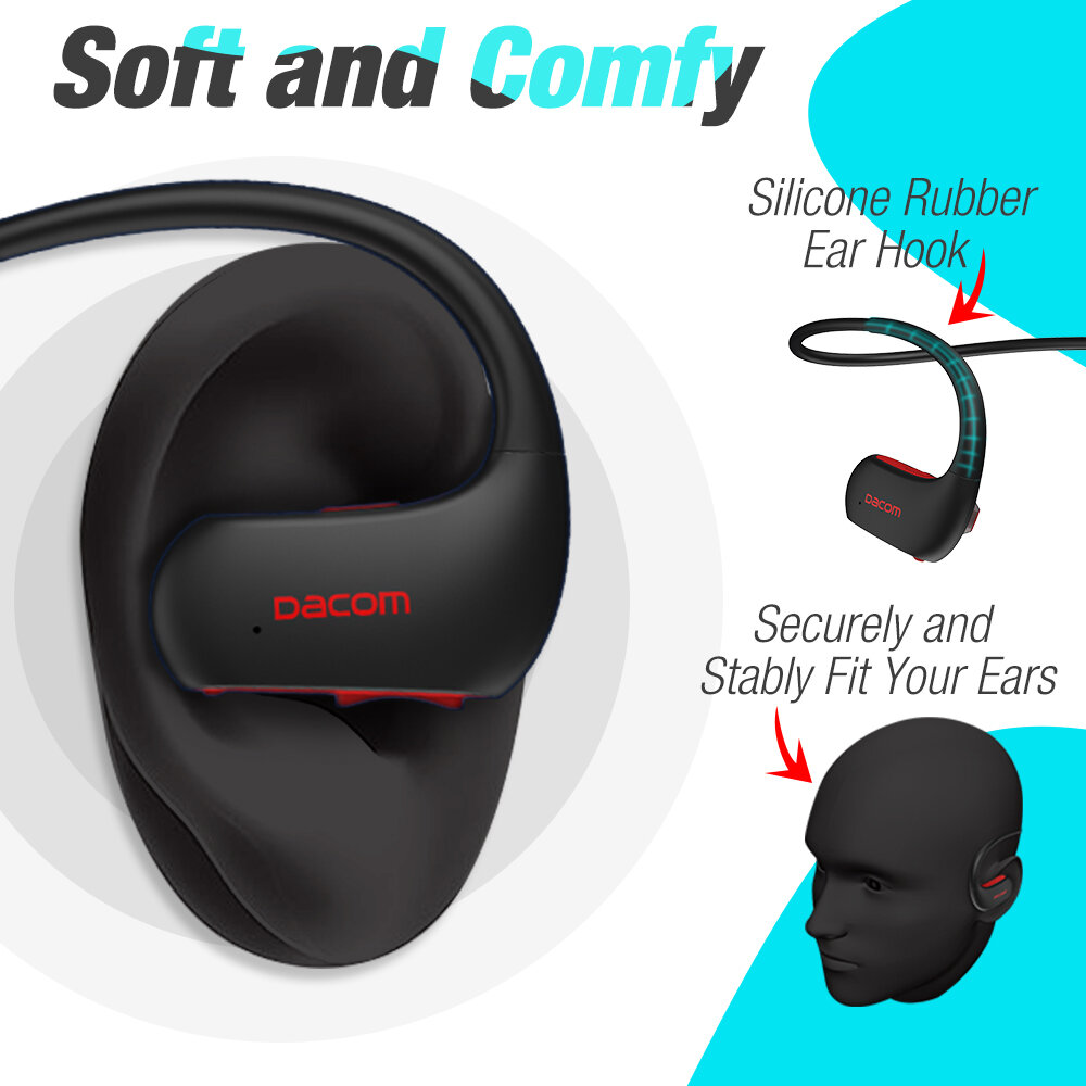 . Caracteristiques: -Les crochets d'oreille sans fil etanches pour oreillettes en caoutchouc de silicone liquide, se sentent exquis et doux, vous pouvez le porter sans douleur ni tension. -Le nano-revetement resistant e l'eau IPX7 protege efficacement les ecouteurs de sport de la sueur et de la pluie, assure une duree de vie plus garantie. -Parfait pour la course, le jogging, la randonnee, le yoga, les exercices, la gym, le fitness, les voyages, etc. - Pilotes specialement coneus avec Bluetooth 4.1 HD Audio et technologie d'annulation de bruit CVC Smart, offrent des basses profondes et puissantes qui completent parfaitement les genres musicaux populaires d'aujourd'hui. Caracteristiques: Modele de : DACOM L05 version Bluetooth : V4.1 fonctionnement Bluetooth : Classe 2 Niveau d'etancheite : IPX7 Mode : Casque / mains libres / A2DP / AVRCP Portee de fonctionnement : environ 30 pieds (10 metres) Tension de charge : 4,8 e 5,5 V CC Temps de lecture MP3 : Environ 8 heures Autonomie en veille : environ 180 heures Temps de charge : environ 2 heures Certificat : CE, ROHS, FCC et BQB peuvent etre appliques etat de la batterie : prend en charge IOS, depend du telephone mobile Couleur : noir, rouge, camouflage Contenu du coffret: 1 * casques 1 * ceble de chargement micro USB 2 * oreillettes 1 * Manuel d'utilisation