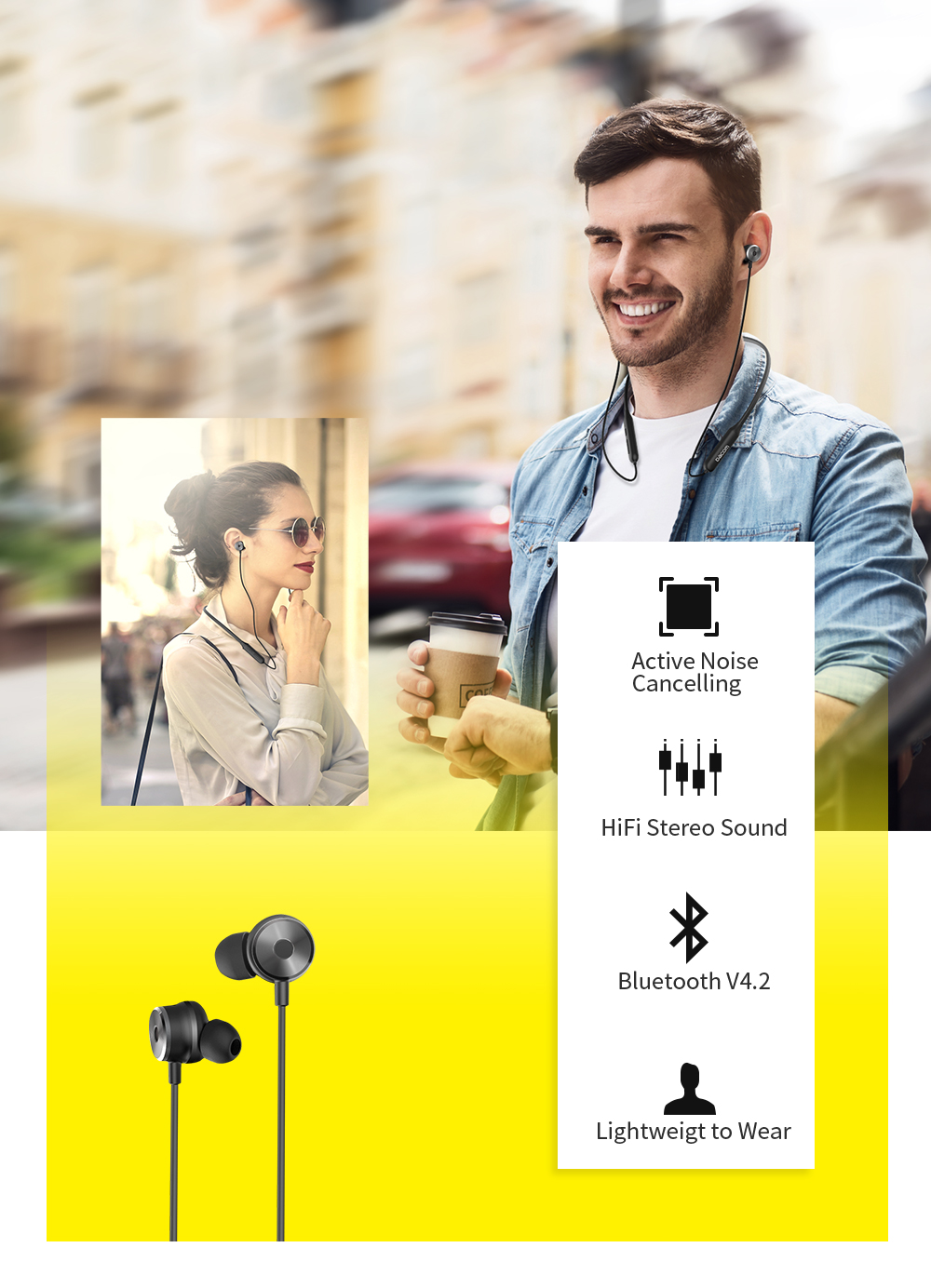 Caractéristiques clés...- Conception de l'oreillette, vos écouteurs sont toujours sur votre cou, pas facile à perdre ou à tomber.