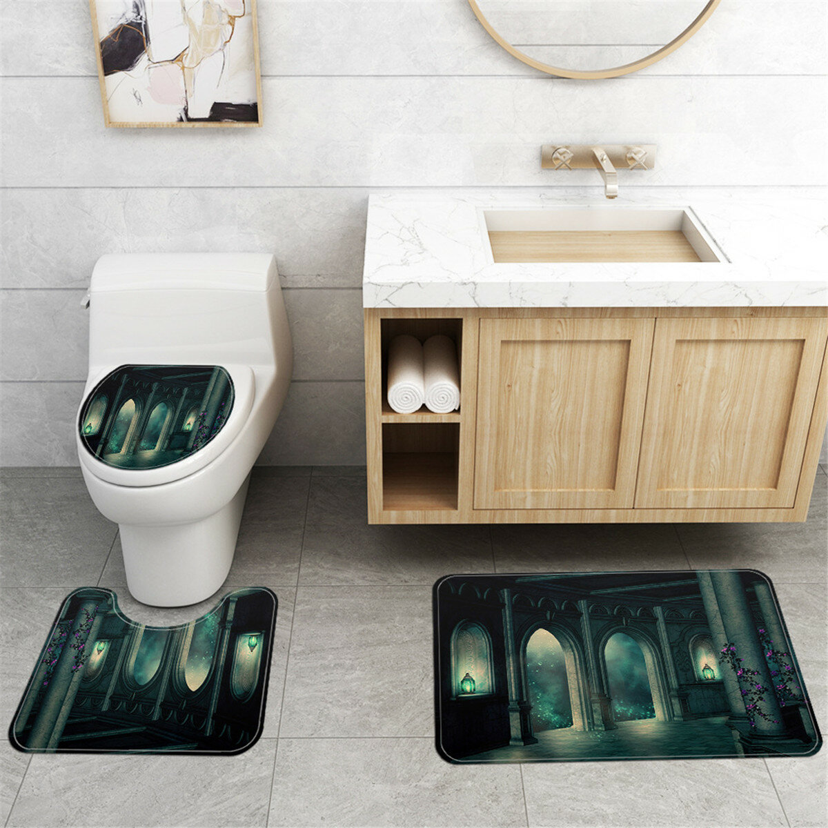 Dark Castle Printed Waterproof Shower Curtain Anti-slip Toilet Mat Carpet Set