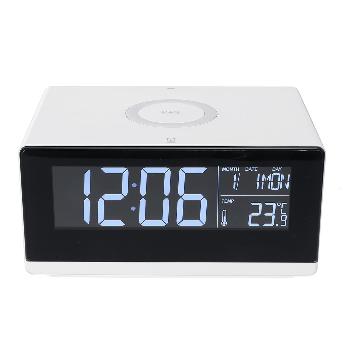 DC12V Digital Reveil Numerique Veilleuse Gradateur Et 10W Qi Chargeur Rapide Sans Fil Pour Telephone