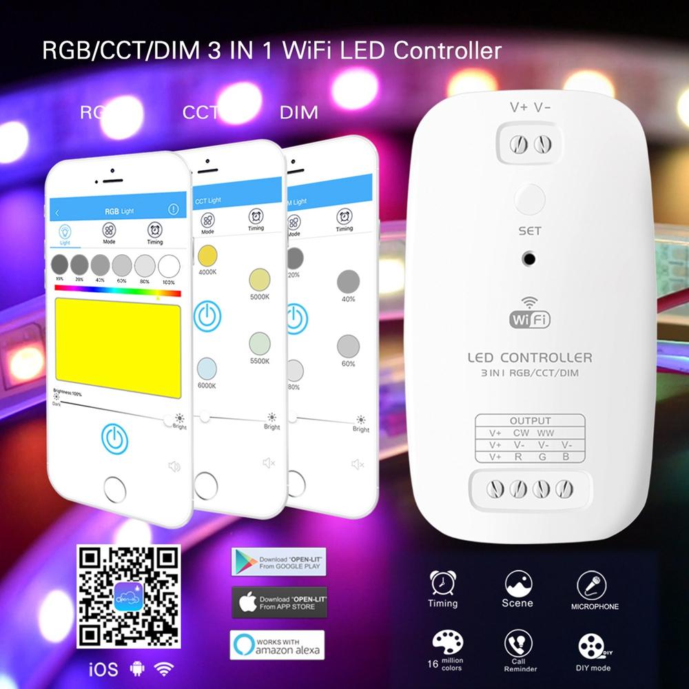DC9V-24V RGB CCT Dimmer 3 in 1 WiFi Smart APP LED Strip Light Controller Work with Amazon Echo Alexa