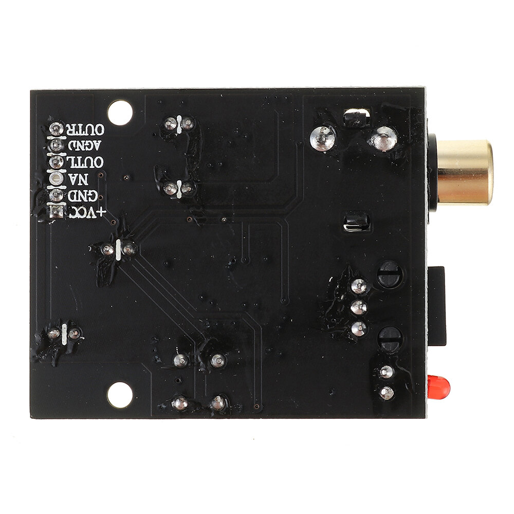 . La description: Le decodeur numerique DAC, module DAC, peut etre installe dans l'amplificateur de puissance pour etendre l'interface d'entree de l'amplificateur de puissance, connecter l'interface de sortie numerique du PC ou du boetier TV avec fibre optique ou coaxiale. La transmission du signal numerique peut reduire efficacement le bruit d'interference et ameliorer la qualite sonore. Caracteristiques: 1. Soutenez 32K-192K, anti-protection supplementaire d'alimentation d'energie. 2. Coude LED parallele, support 6 mm LED, point central LED au PCB est d'environ 6,5 mm, pratique pour l'installation. 3. Adoptez CS8416 + CS4344, meilleure qualite sonore que le decodage audio ordinaire. 4. 24-BIT D / A, prend en charge 16-24 BIT. 5. Le taux d'echantillonnage atteint 192K, prend en charge 44,1K 48K 96K 192K. 6. taille du PCB: 40 * 48 mm 7. Poids net: 25g Une fonction: -Fibre optique et entree de signal numerique coaxiale (priorite fibre optique). -Signal audio stereo de sortie 0.7VA (avec fonction mute). Entree d'alimentation: + 5.1V e + 12V (ne peut pas depasser la plage d'alimentation), ne peut pas etre alimente par l'adaptateur secteur. Pour eviter que la tension d'alimentation individuelle + 5V soit basse, la tension d'alimentation de la puce DAC est faible, ce qui entraene divers problemes, veuillez utiliser une alimentation superieure e + 5V et 6V-12V pour tester. Il peut continuer e etre utilise s'il n'y a pas de probleme pour le test de puissance + 5V, sans aucun effet. Emballage inclus: 1 x carte decodeur Noter: Le courant mesure de la carte DAC (192K) n'est pas inferieur e 0,1A, de sorte que la puissance de l'alimentation generale peut etre satisfaite.