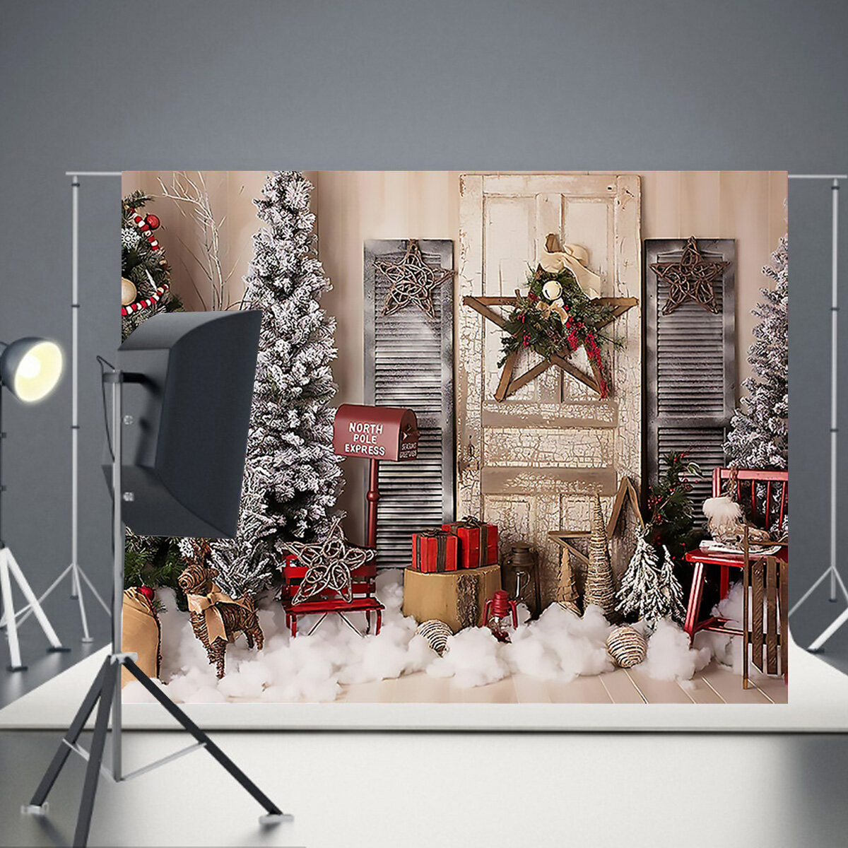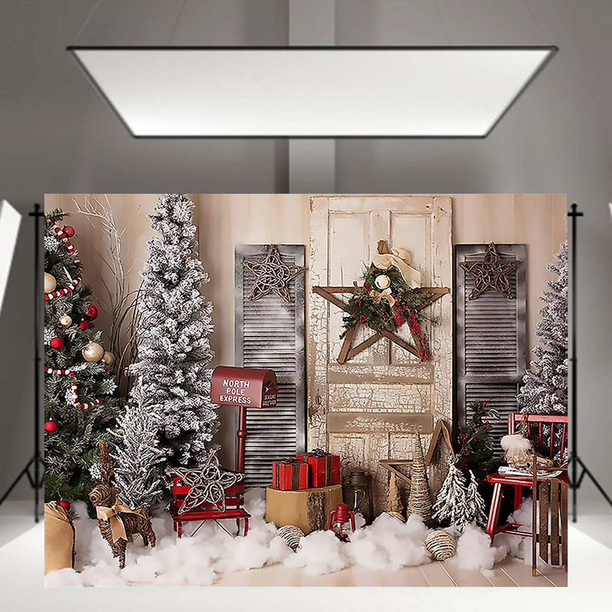 Decors de photographie de noel arbre de noel porte etoiles tissu de fond pour Studio photographie toile de fond accessoire – 1,5 x 2,2 m
