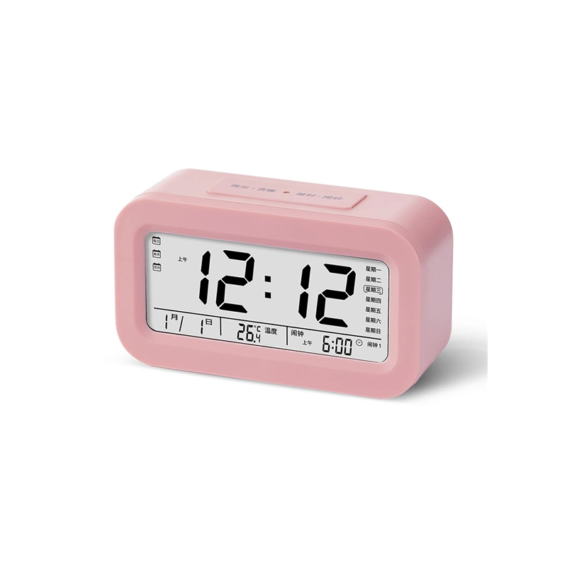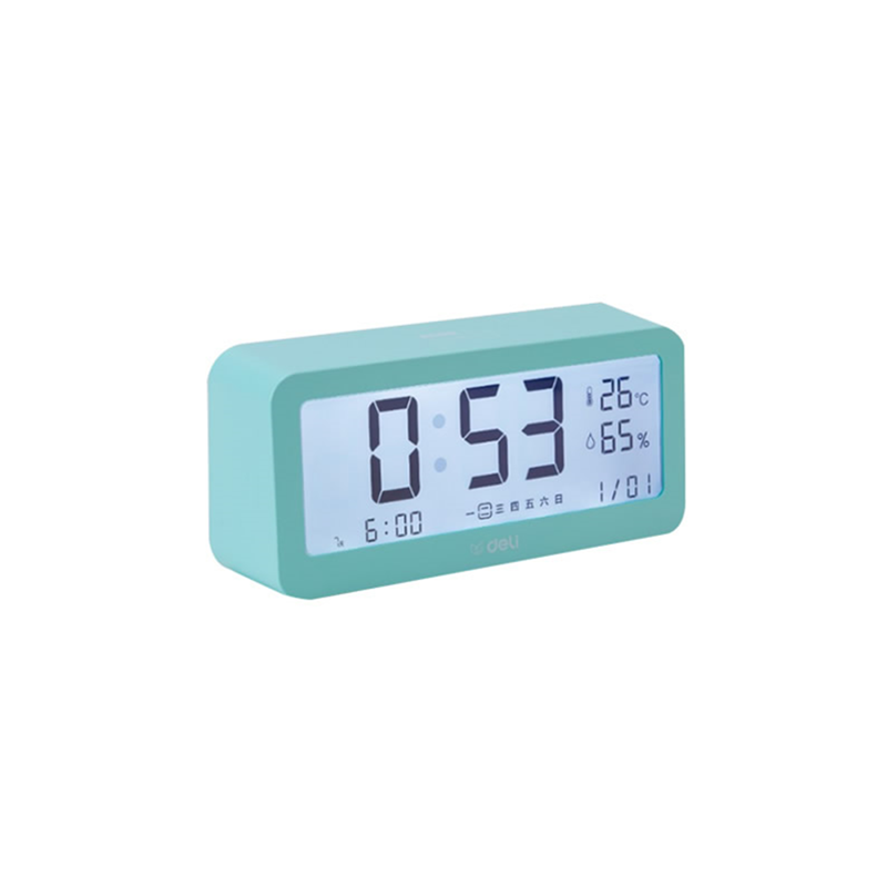 DELI LCD horloge maison intelligente sommeil silencieux rapport vocal horloge intelligente humidite temperature charge trois ensembles d’alarme – Blanc