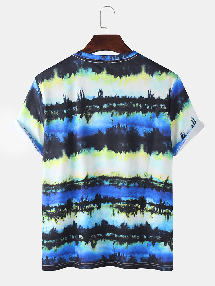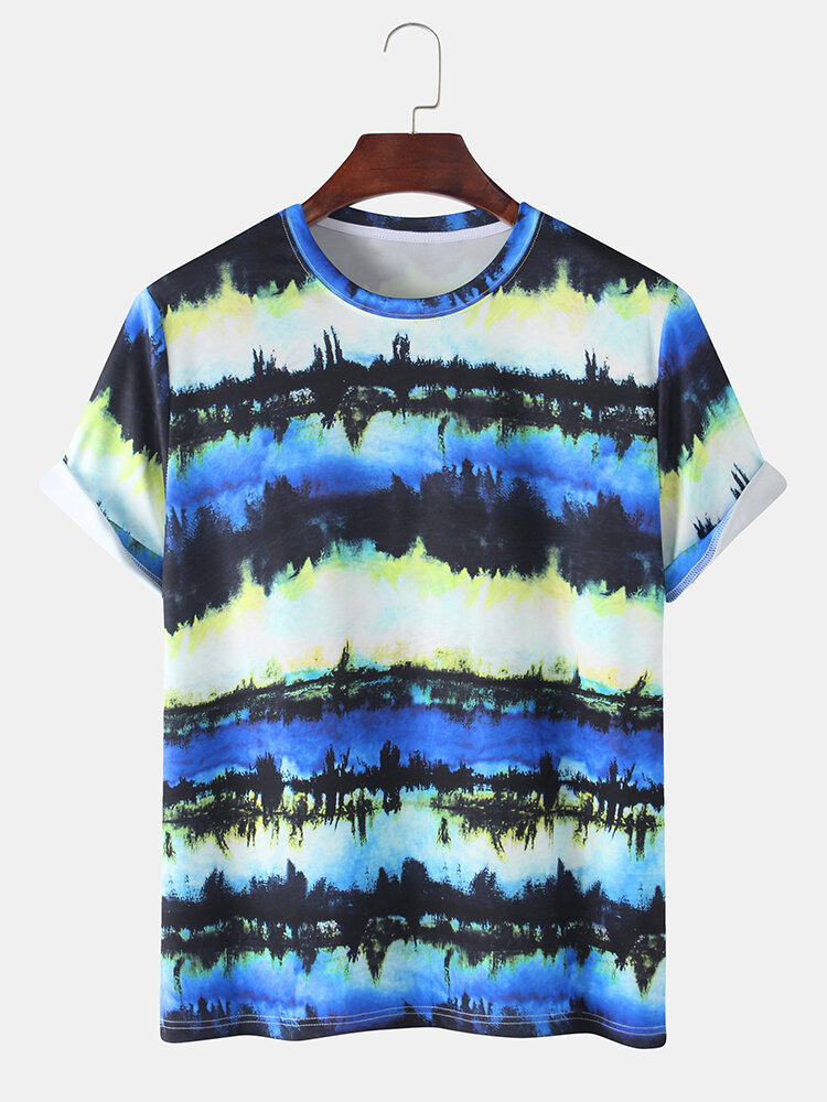 Description:Fit Type:Loose FitMaterial:PolyesterNeckline:Round NeckPattern Type:LandscapeScene:Leisure,Home,CasualSeason:SummerSize:M,L,S,XLSleeve:Short SleeveStyle:Casual
