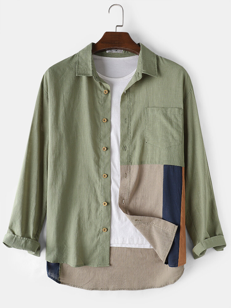 Description::ChArmkpRDecoration:PocketFit Type:Regular FitMaterial:CottonNeckline:LapelPattern Type:Patchwork,SolidScene:Leisure,Home,CasualSeason:SummerSize:XXL,L,S,XL,MSleeve:Long SleeveStyle:Casual