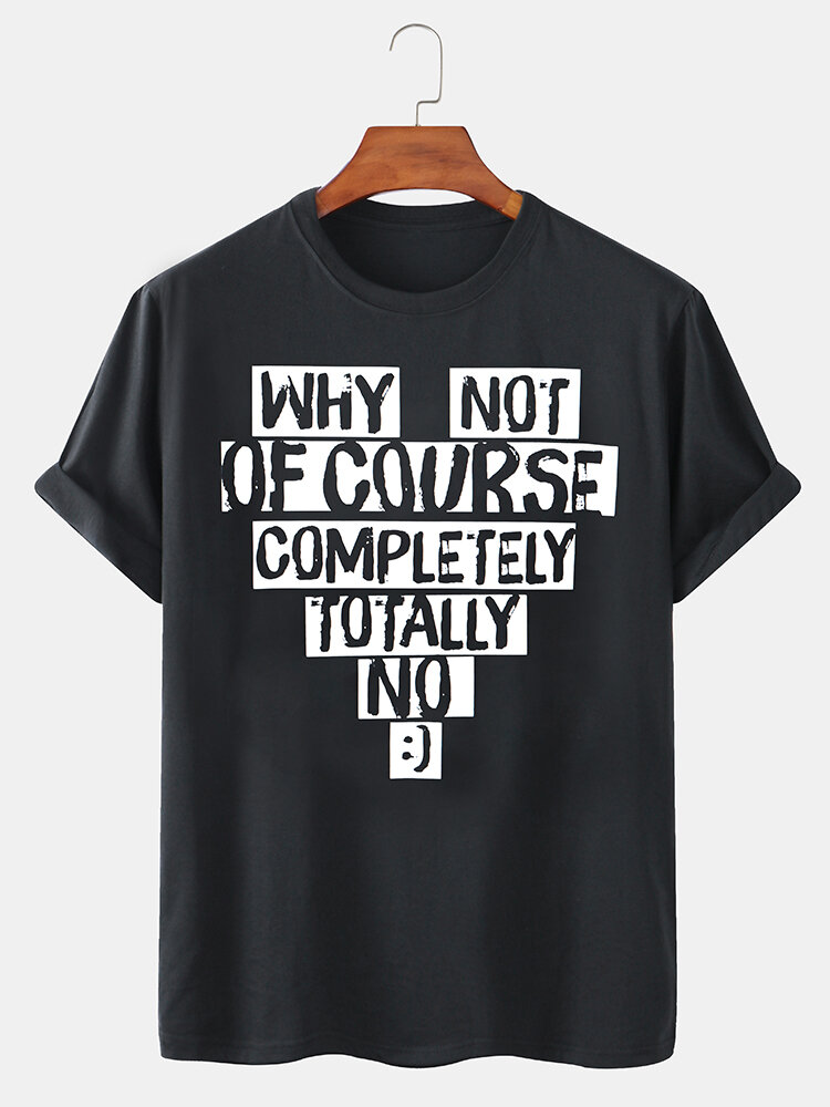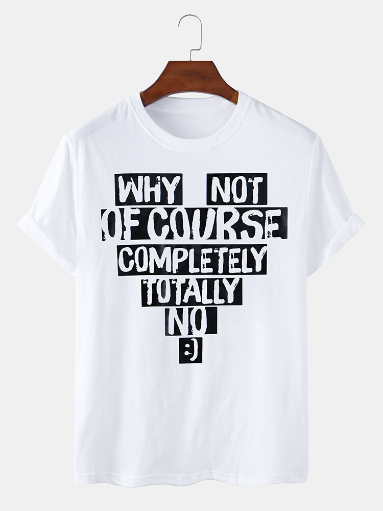 Design Text Print Cotton Breathable Short Sleeve Crew Neck T-Shirts – White L