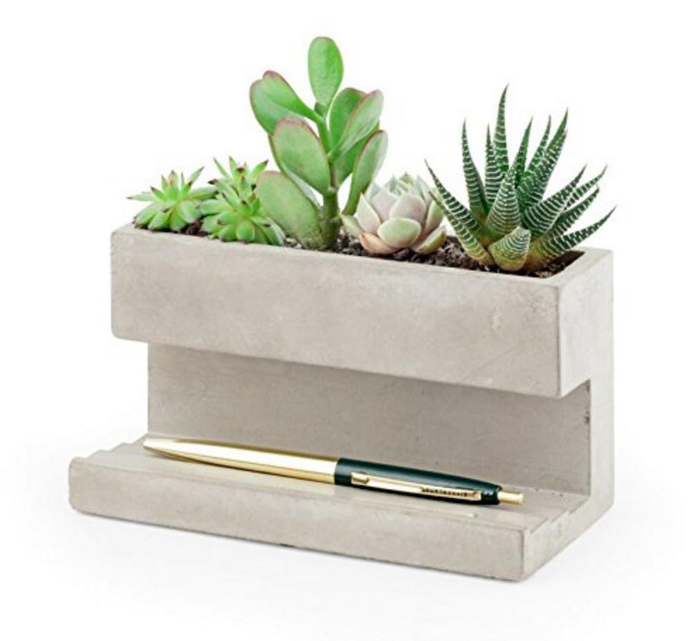 1. Ideal for succulents, this office pot is made of solid concrete.