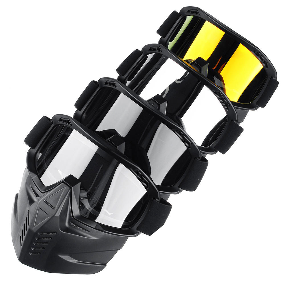 : 1. 2 in 1 Detachable Full Face Mask Goggles. 2. The layered foam protects your face. 3. Availably protect your eyes from sands, debris, powders or other small pieces, even radiation and ultraviolet ray. 4. The headband is adjustable, you can adjust it to fit your hand. 5. With 4 colors, you can choose one the most suitable one to protect your riding. PC Lens: Designed for curved shape, the surface of the lens has been specially strengthened for many times to prevent friction and impact, which makes the field of view wider and clearer. TPU Frame: The frame is light, tough, resistant to tears and resistant to distortion. Elastic Headband : The widened double-plush elastic band makes you feel pressureless on your head. Double velvet elastic band makes the feel more perfect, adjustable length, suitable for all types of head. Specification: Size: 19x18cm Lens Material: PC Frame Material: TPU Headband Material: Double plush Application: Motorcycle and electric bicycle Cycling, Skateboarding, Skiing, Skateboarding, Hiking, Cross-contry events, Field trips. Color: Black Lens Color: Colorful, Silver, Grey, Clear Package Included: 1 X Full Face Mask Glasses