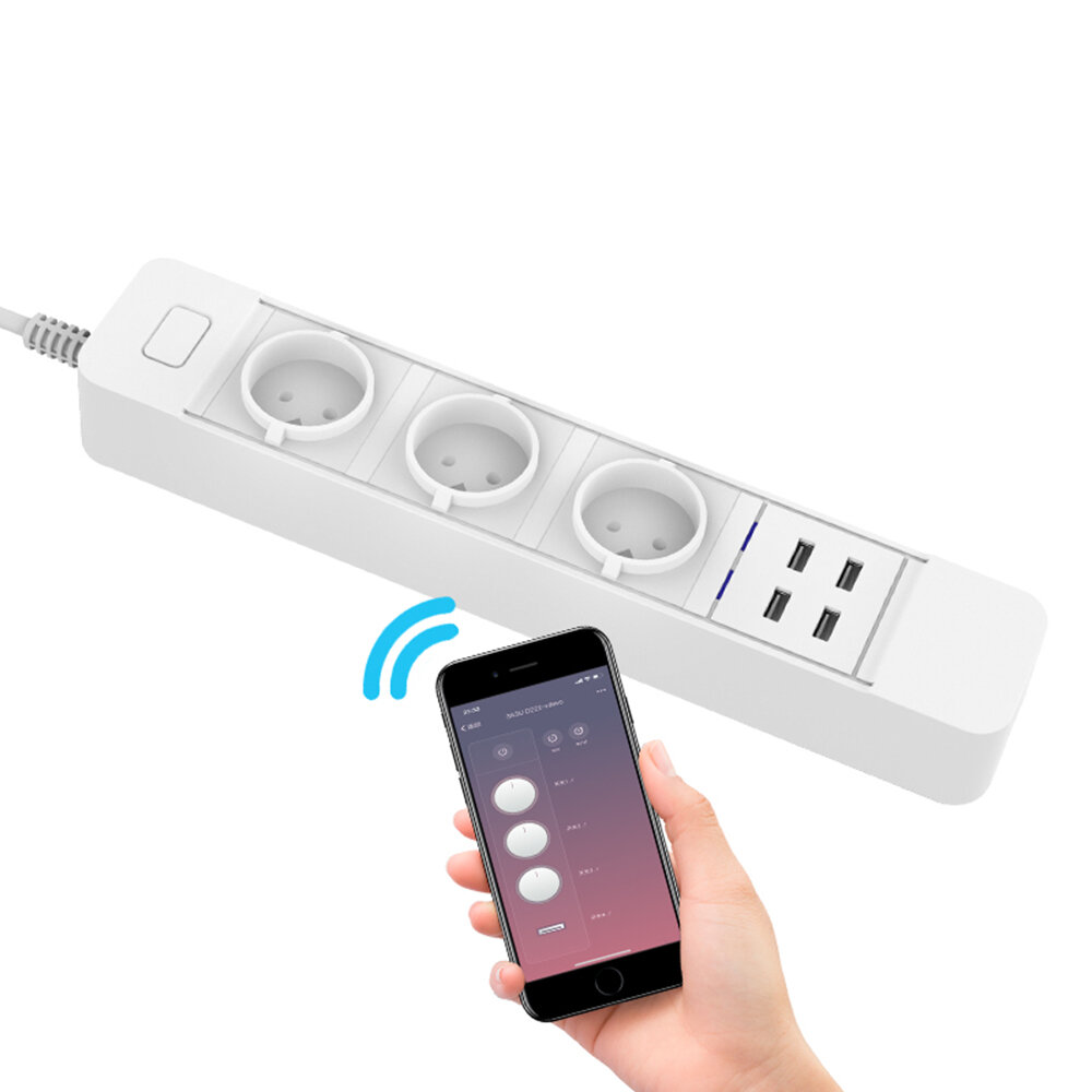 DHEKINGD D555 Smart WIFI Application Bande de contrele avec 3 prises UE Branchez 4 USB Prise de charge rapide Prise de travail – Prise UE