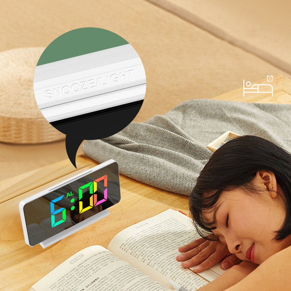 Digital Alarm Clock Electronic Colorful Screen Large Display Modern Desk for Bedroom Home Office Decor Mirror