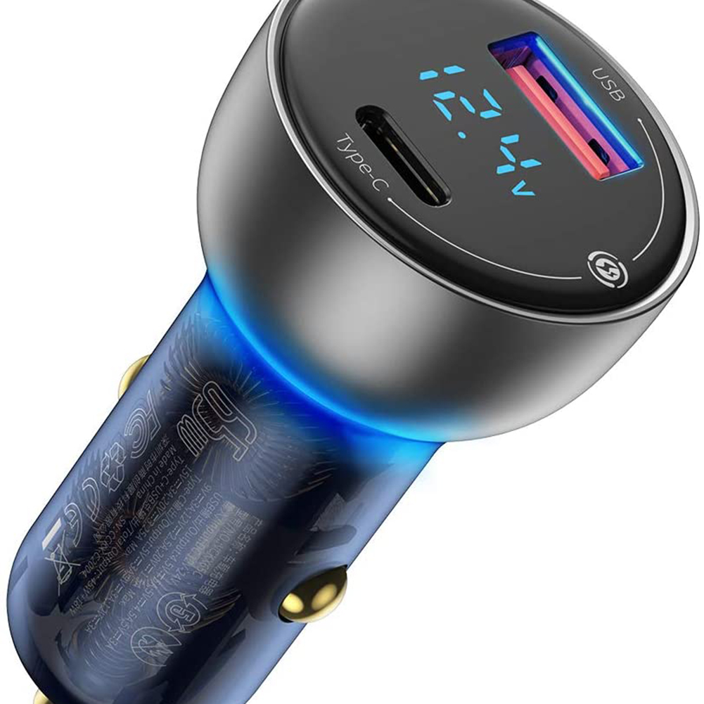 Digital Display Mini Car Charger Qc3.0 Metal Pd Fast Charging Head 65w Wide Compatibility For Usb-c Usb-a Powered Devices light grey