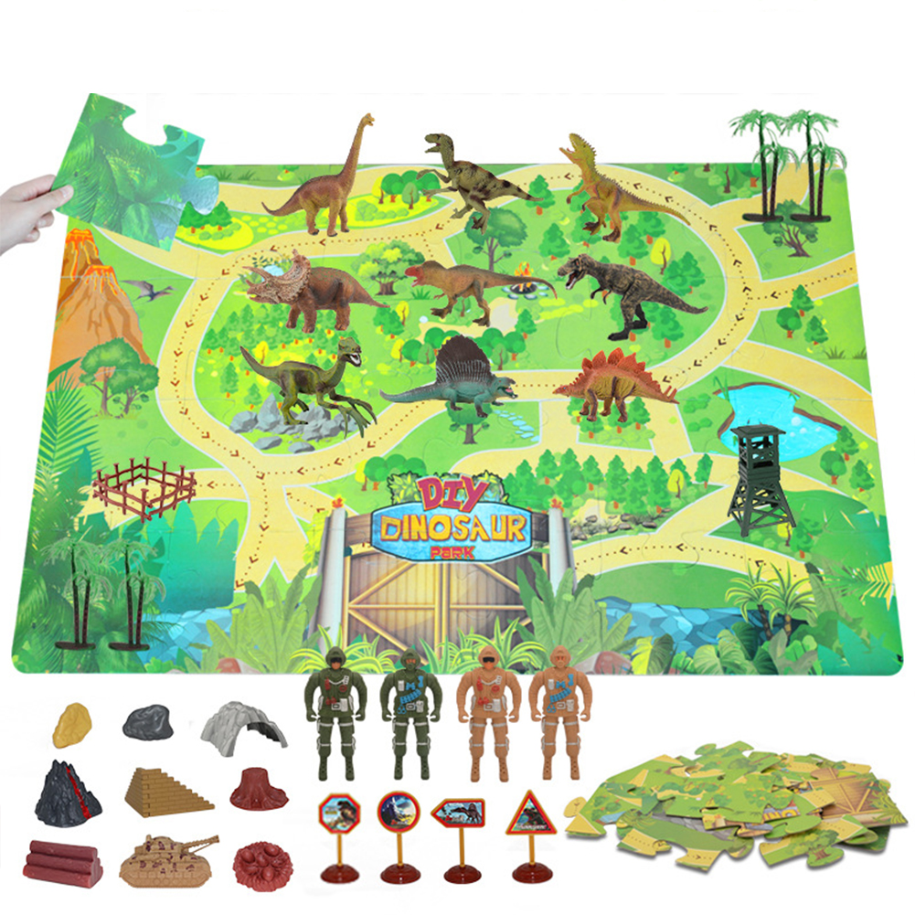 Dinosaur Scene Carpet Storage Puzzle Set Learning Educational Toy For Kids + Character 6 Dinosaurs