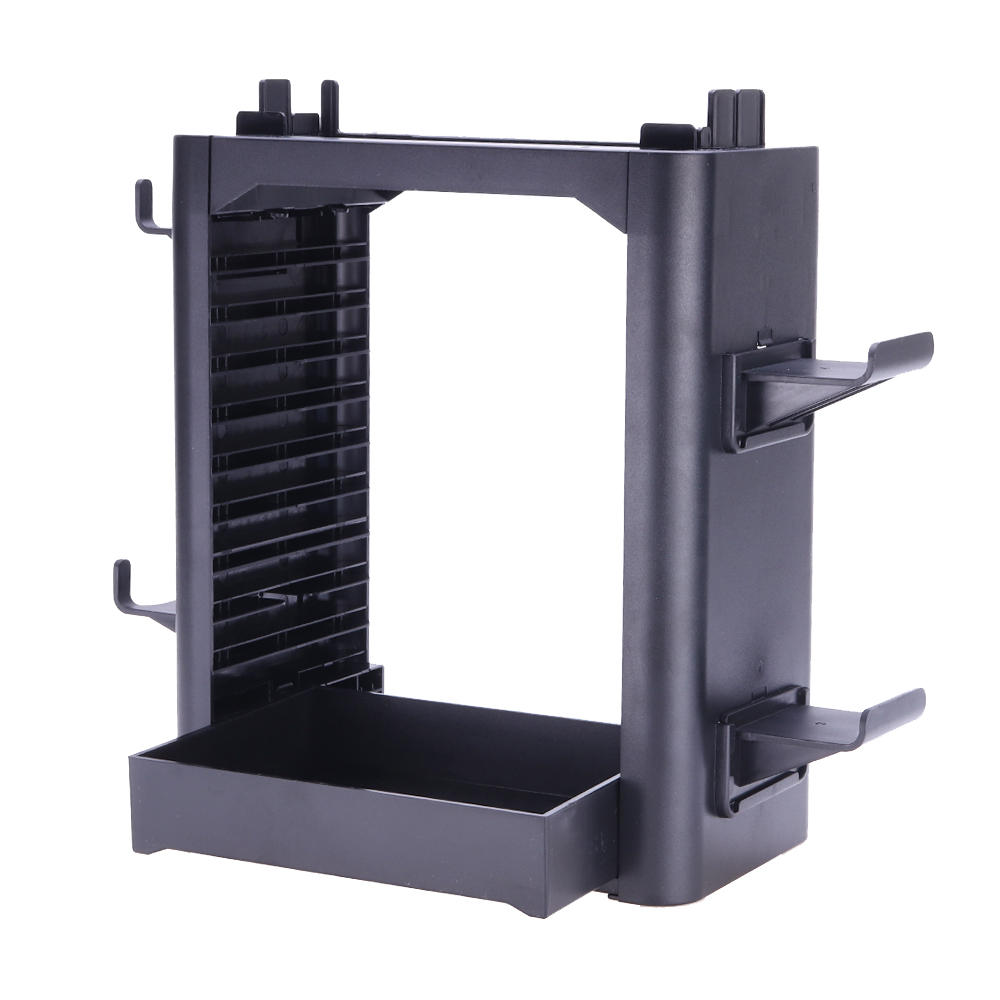 Il peut contenir jusqu'e 10 disques de jeu et les crochets des deux cetes peuvent etre utilises pour suspendre le contreleur