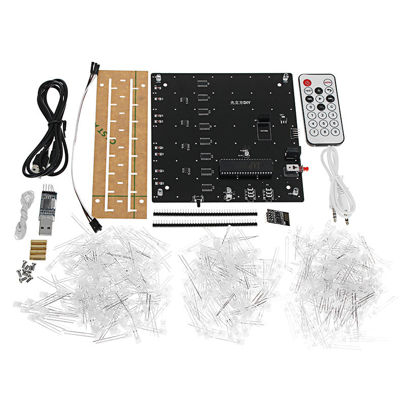 Circuit design: IAP12C5A60S2 + 74HC595 + APM4953 + WIFI + Infrared remote control1. The integrated IAP12C5A60S2 high-speed 1T microcontroller2. 5A high current MOS tube driver chip (to solve the uneven brightness)3. High-speed scanning chip and serial control cascade chip4. Use WIFI APP Android software control5. Infrared remote control (Easy to control) Package Includes: 1 x RGB LED 3D Light Cube Kit