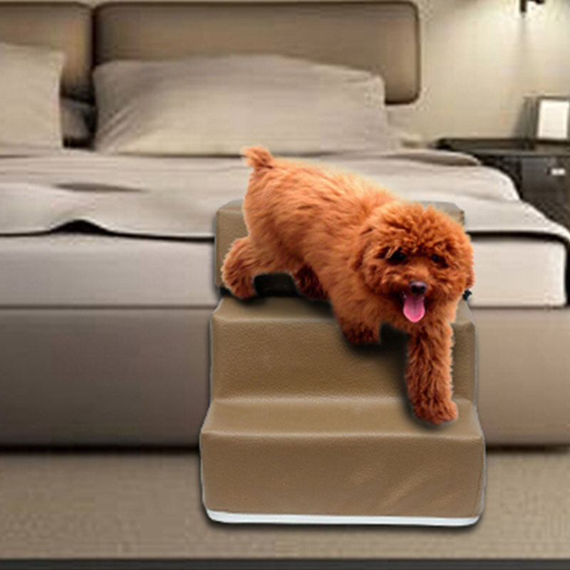 Dog Stairs Leather Pet Ladder Sponge Stairs Dog Teddy on Sofa on Bed Ladder – Khaki