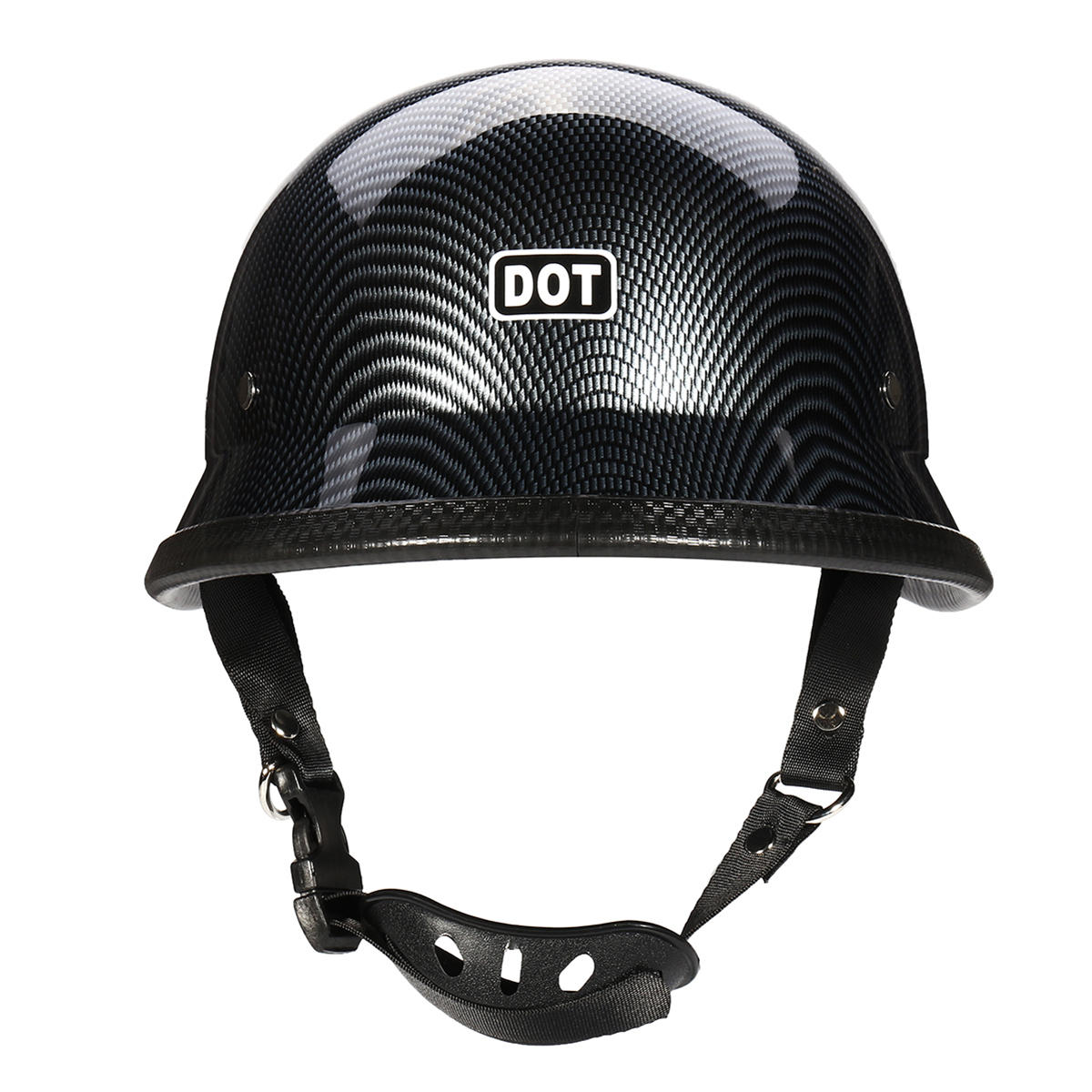 DOT German Motorcycle Carbon Fiber Half Face Helmet Chopper Cruiser Biker M/L/XL – L