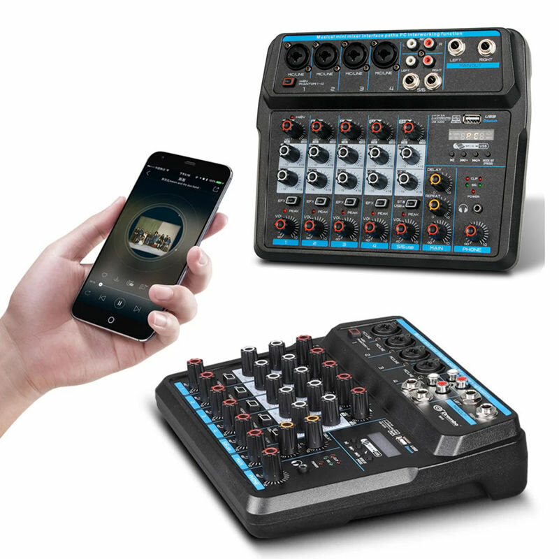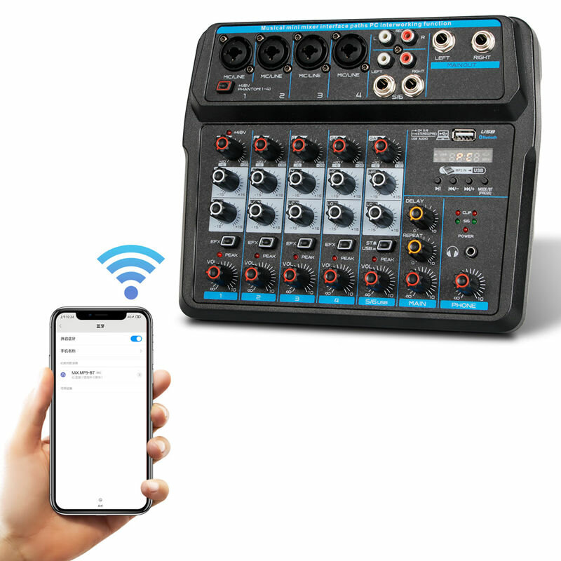 Drembo M Console de mixage Audio numerique Bluetooth portable 4/6 canaux avec carte son USB 48V Phantom alimentation pour enregistrement DJ PC – une