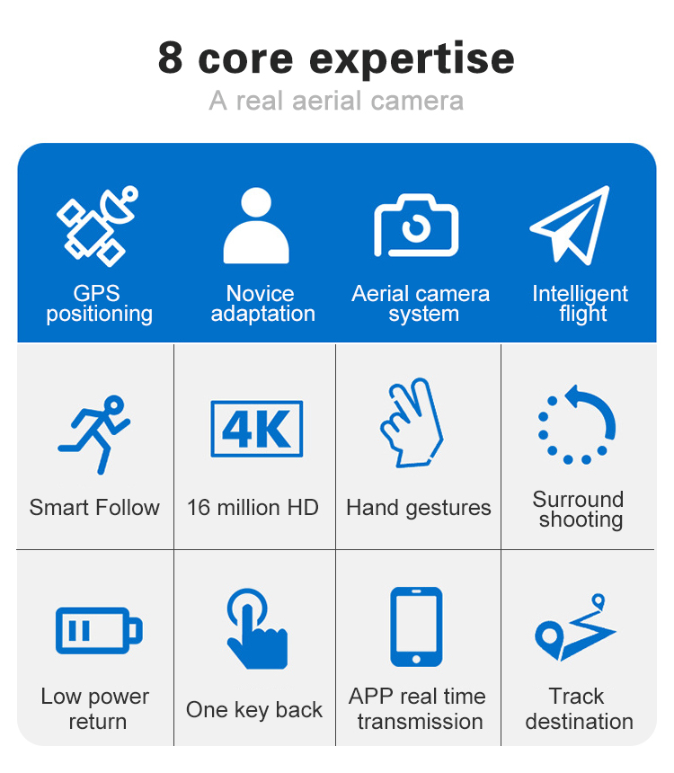 Dual cameras with optical flow positioning function both camera can be switched synchronously With altitude hold mode function provides stable flight. With wifi function can be connected APP, APK system to take pictures, video, real-time transmission through the phone camera image. There are 2 cameras can be choose. With 5.0MP 1080P wide angle camera give wide range high denfinition pictures and video With attractive headless mode, completely solving 'loss of orientation' problems.