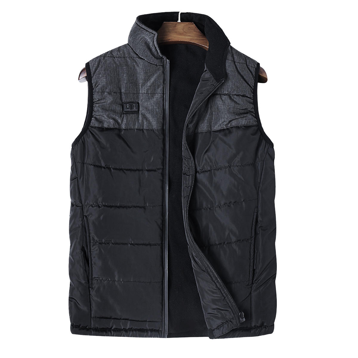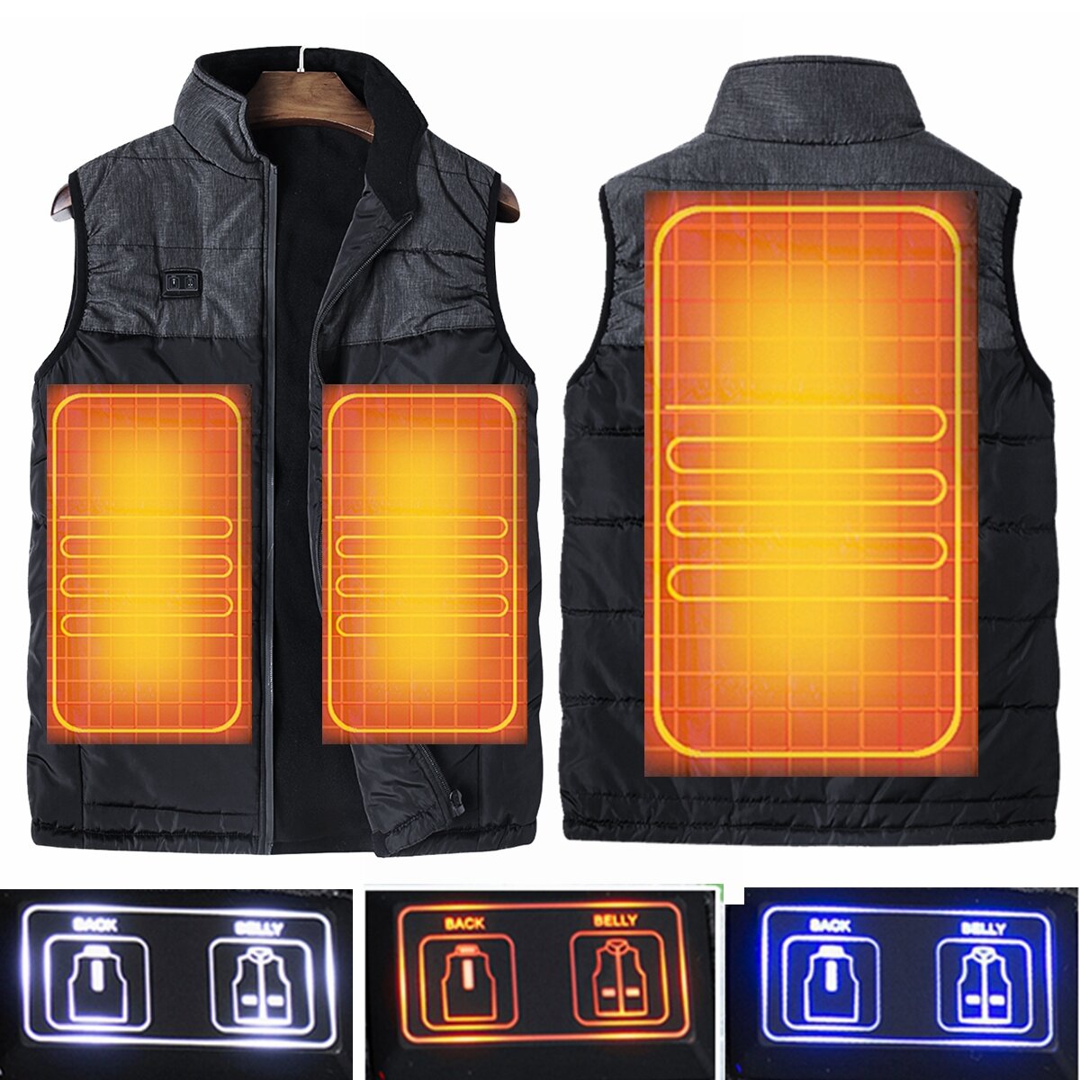: Temperature Shift Dual Control Manual adjustment Warm: 65℃ Red Light Comfort: 55 ℃ White Light Energy Saving: 45℃ Blue Light Mens Intelligent Heating Down Vest Lightweight Warm Heated Pad Winter Body Warmer Specificaiton: Color: Black , Gray Material: Polyamide Fibre , Down Size: S,M,L,XL,2XL,3XL Collar: Turn Down Collar Sleeve Length: Sleeveless Temperature Regulation: 45℃ 65℃ Power Supply Interface: USB Fever Area: Back , Belly Power Supply: 5V,2A Mobile Power Not Included Function: Keep warm, Anti water splashing and Prevent cold Age Of Application: Adult Men Features: 3 Gear Control Levels. Lightweight heating down vest. This is a intelligence vest for you. With mobile power storge pocket, easy travel. Back and belly independent temperature control. 1 minutes fast heat, dispel cold and keep you warm. Set the temperature you want to respond to a variety of environments. A button to heating, three stall temperature control, intelligent heating. General USB interface power supply, longer service life,anti water splashing and washable. The fashion is warm, comfortable and breathable, and it's a good partner for your winter going out. How To Use: 1.Take out USB plug 2.Plug in removable charger 3.Switch on the removable charger 4.Press the chest temperature control switch for 2 second 5.Red light flashing,means heating automatic 6.After red light flashes for 5 minutes,then automatic turn to white light,means medium temperature 7.Manual adjustment has three level,red light means hign-temperature heating continuously. White light means medium heating continuously,blue light means low heating continuously 8.Press the chest temperature control switch for two second,lights out and stop heating Washing instructions: 1.Take out removable charger. 2.Neutral detergent is available and then hand wash. 3.Do not force knead or beat. 4.After nature air drying can be use. Warm Tips: 1.If not used for a long time,please do not plug in removable charger 2.Do not use high temperature water or strong acid detergent. 3.Forbidden to use electricity for wet clothes,Please turn off the power and stop using if cloth is wet. 4.Use time depending on the capacity of removable charge. Package Included: 1 x Sleeveless Vest Mobile Power Not Included