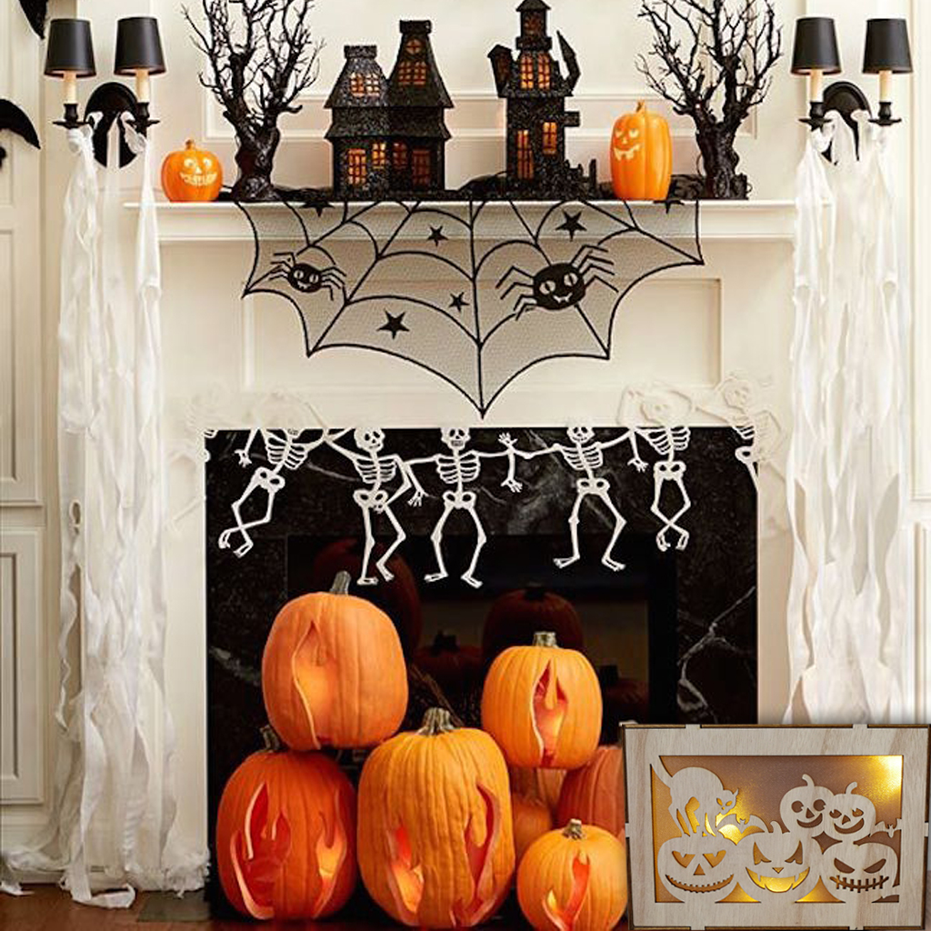 Dual Use Wooden Rectangle LED Hanging Pendant for Home Halloween Decor JM01500