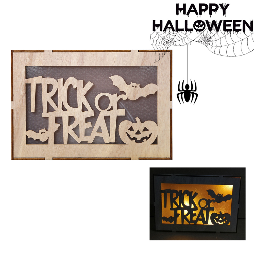 Dual Use Wooden Rectangle LED Hanging Pendant for Home Halloween Decor JM01501