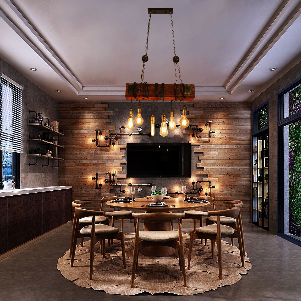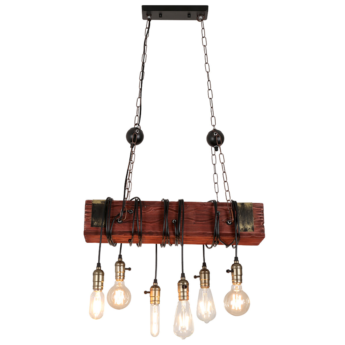 E26x6 Light Wooden Chandelier Industry Restaurant Pendant Lamp Art Ceiling Decor AC110-240V