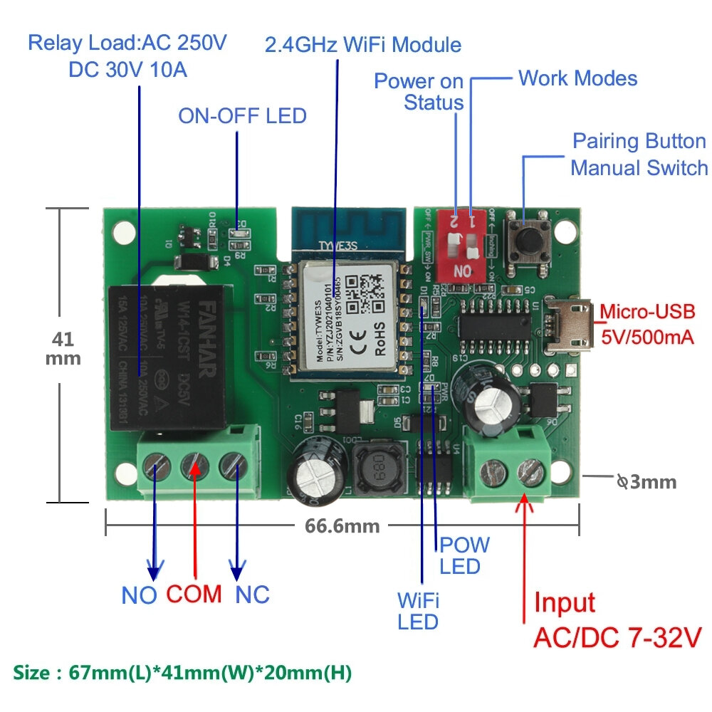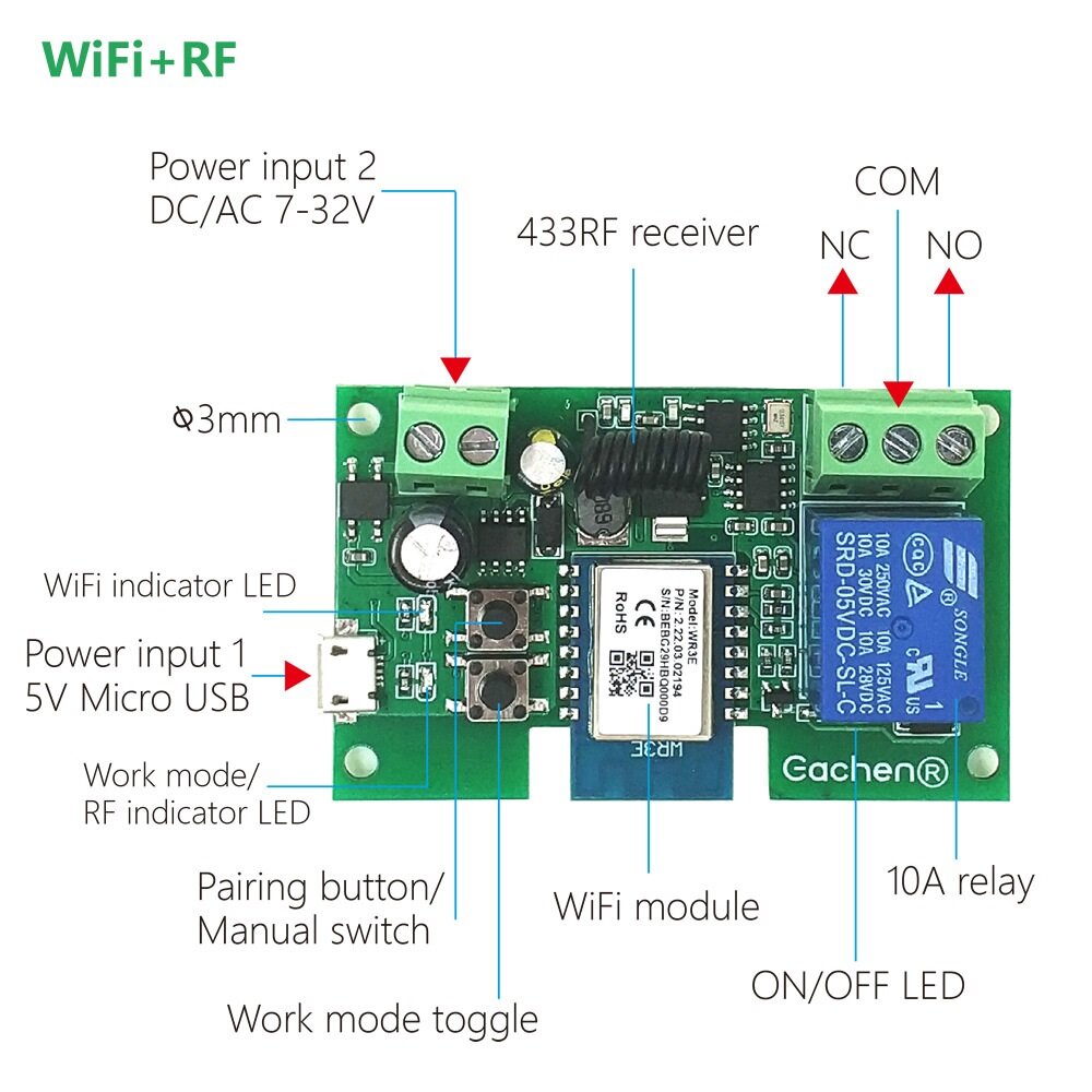 EACHEN Tuya 433RF Module de relais unidirectionnel WiFi Module de commutateur e verrouillage automatique / verrouillage fonctionne avec le commutateur de telecommande intelligente sans fil Aleax Google Home – Wifi