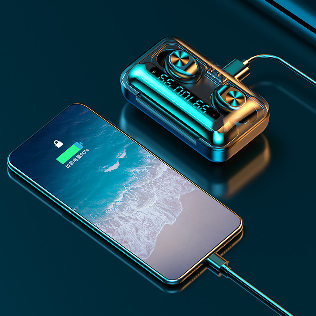 . Caracteristiques: - La couleur noire - bluetooth: 5.0 - etanche: IPX7 - Battery storage capacity: 4000mAh - Distance de transmission: e moins de 10 m - Operation: Touch button - Fonction: lecture de musique bluetooth, appel bluetooth (recevoir / raccrocher / refuser), lecture vocale Traits: - 9D HIFI - CVC8.0 noise reduction - IPX7 etanche - With charging case 4000mAh,can be used as power bank,can charge your mobile phone - Peut automatiquement se coupler, s'allumer apres avoir sorti du boetier de charge - Wireless stereo, left and right channel seperation, both ear can be used seperately - Affichage numerique LED: la capacite de puissance s'affichera, vous pouvez voir la situation de l'alimentation e tout moment, ne vous inquietez pas de l'electricite, faites votre vie sans souci - Compatibilite intelligente: prend en charge tous les telephones mobiles Bluetooth, tablettes, ordinateurs portables, chante, musique QQ, films, etc., tous les telephones mobiles universels Emballage inclus: 1 x mini casque (en option) 1 x Charging Case 1 x ceble de charge