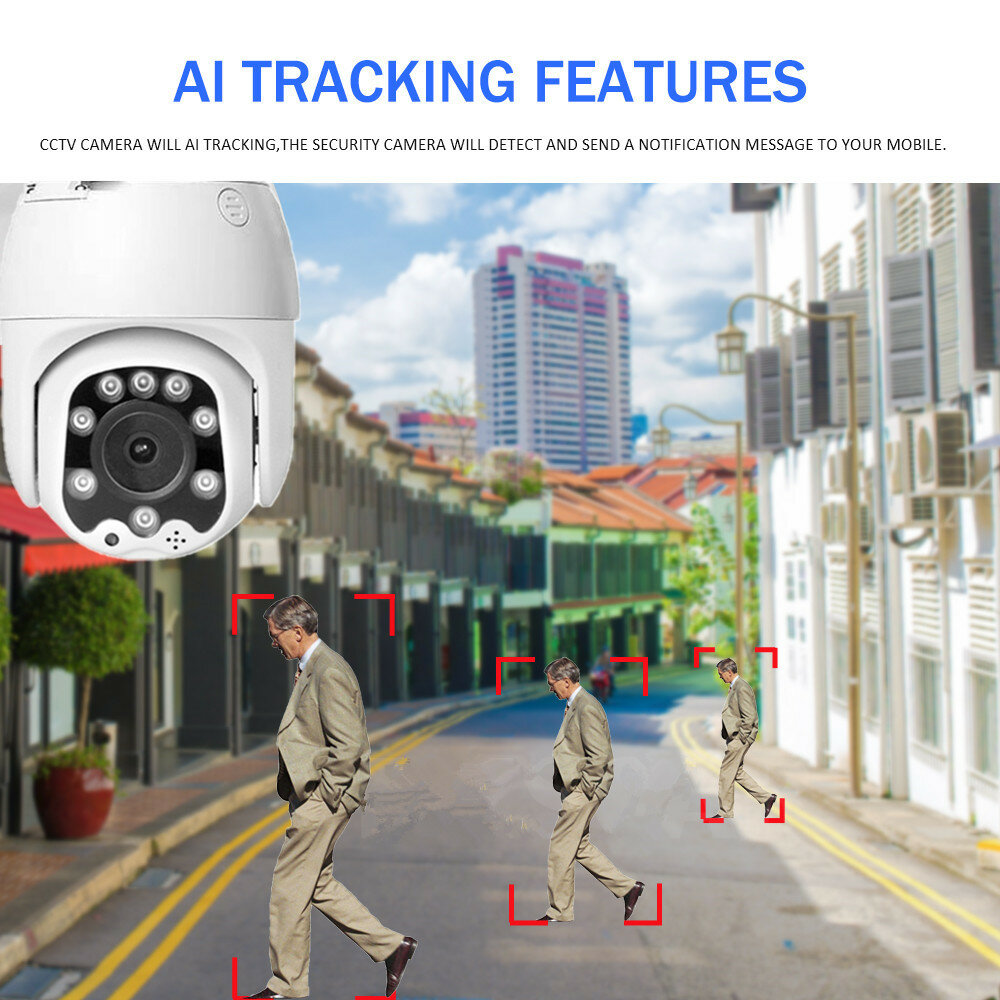 ECQ06-2MP-5X 1080P Camera IP 5 x zoom optique WiFi Suivi automatique sans fil 2MP Vision nocturne PTZ Vitesse etanche Dome Camera de surveillance PTZ E27 Connecteur Stockage de carte TF