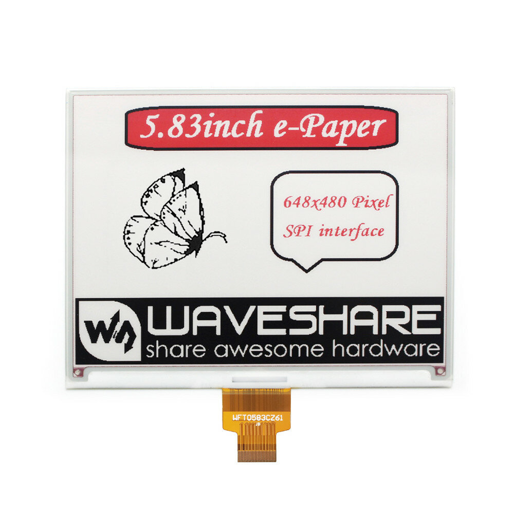 Il s'agit d'un ecran E-Ink raw, resolution de 5,83 pouces, 648 e 480, avec contreleur integre, communiquant via l'interface SPI, prend en charge l'affichage tricolore rouge, noir et blanc.
