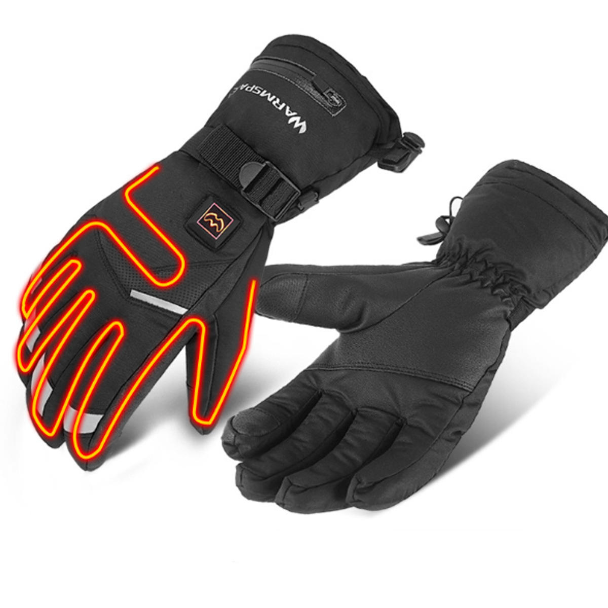 Description: 1 Pair Warm Electric Heated Hands Warmer Smart Gloves with 6x AA Battery Battery not including . The glove comes with quick heating design, So, you can keep warm a whole winter. Four fingers heating area,a comprehensive heating system. Multi-layers design, keep warm, waterproof and breathable. Flexible nano-fiber heating chips to prevent heat loss. Suitable for skiing, cycling, traveling and other outdoor activities. Specification: Type: Electric Heated heating Winter Gloves Product Type: Heated Gloves Outer Materials: EVA environment protection layer and Cotton , Polyester , Spandex Size: M,XL size for choose Color: Black Power: 6x AA Battery Battery not including Temp control: 5 speeds Heating constant temperature: 40-55 degree Heating area: 4 fingers and back Gender: Unisex Adult Season: Winter Waterproof: YES Windproof: YES Feature: Quick heat, temp control, 4fingers heat, waterproof, windproof, touch screen Note: Due to different producing batches, product details might be a little different. If you minding the difference, please buy it carefully. Please allow 1-3CM differs due to manual measurement. Due to the different display and different light, the picture may not reflect the actual color of the item. Thanks for your understanding. Package Included: 2 X Electric Heating Gloves without battery 2 X Battery Box