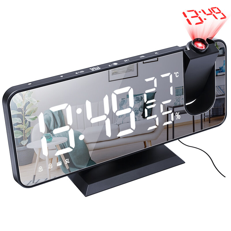 Electronic LED Projector Alarm Clock Desktop Digital Projection Alarm Clock Smart Home Bedroom Bedside Clock – Black