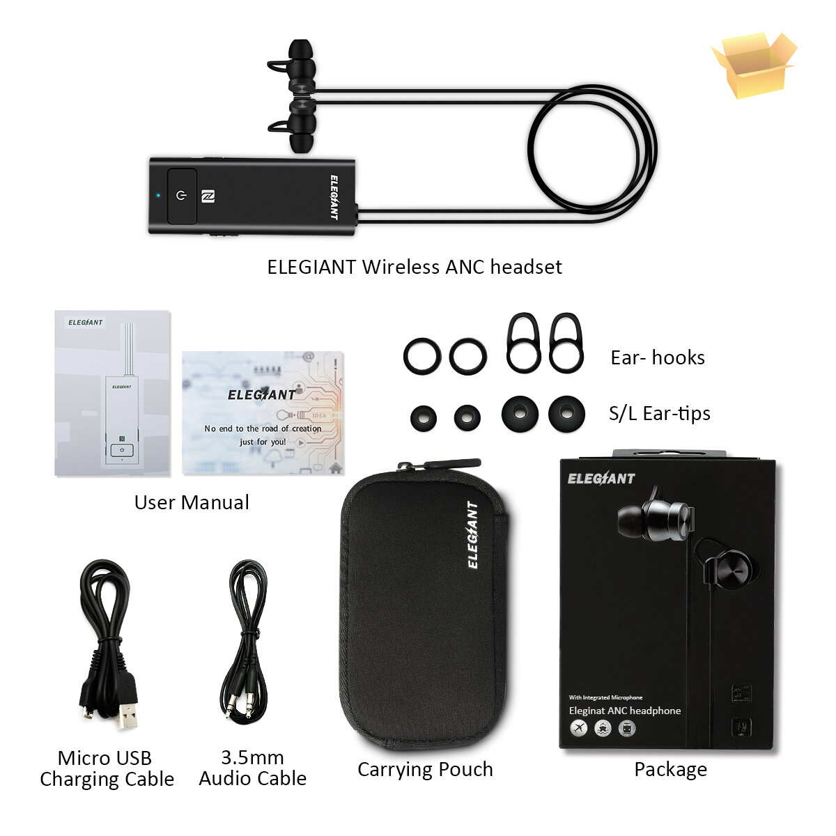 ELEGIANT A8 Active Antibruit NFC Aux In Collar ecouteur Bluetooth Avec Microphone – Noir