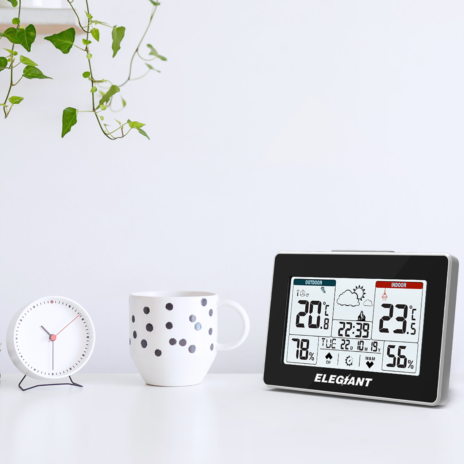 ELEGIANT EOX-9906 Multifunctional Weather Station Clock Electronic Alarm Clock Indoor Outdoor Thermometer Hygrometerumidity Perpetual Calendar Snooze Weather Forecast Clock
