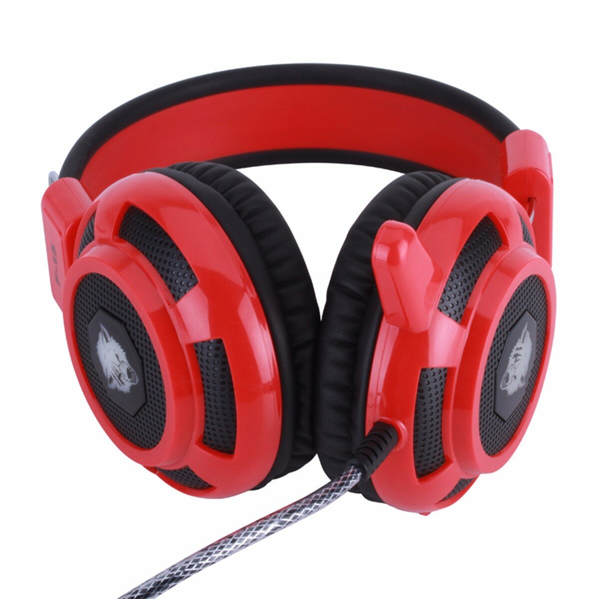 ELEGIANT F15 Casque de jeu filaire Casque lumineux LED 50 mm Hi-Fi Casque stereo 3,5 mm – Rouge