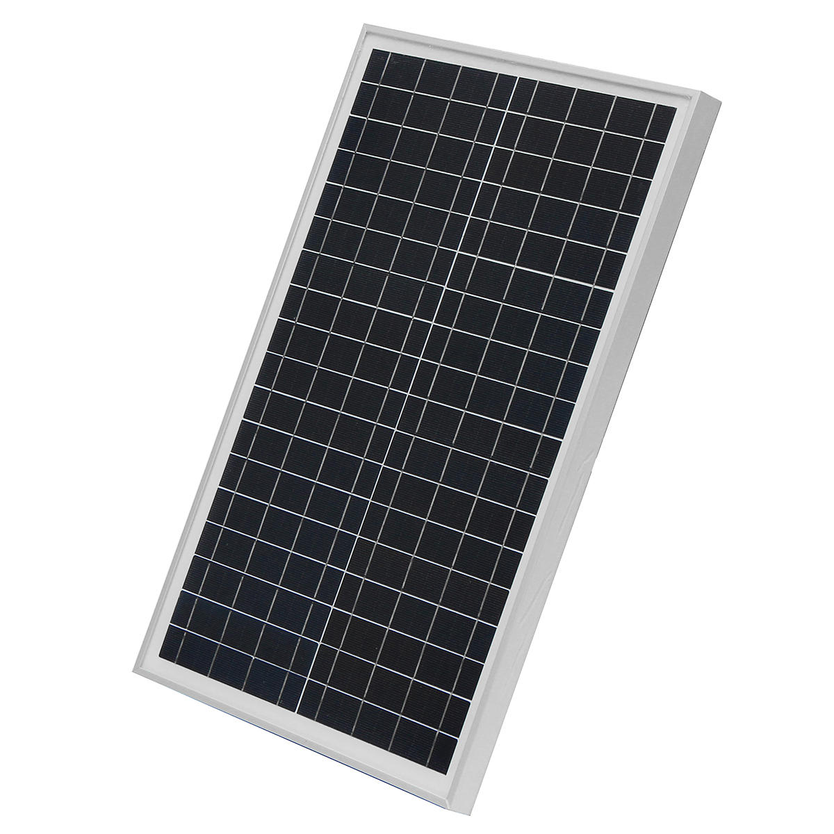 . Caracteristiques: - Grande stabilite, bonne durabilite - Taux de conversion eleve, rendement eleve. - Cadre en aluminium, fort, anti-vieillissement, augmenter la duree de vie. - Peut resister e l'environnement different, la performance impermeable e l'eau est bonne. - Convient pour les batteries de voiture, voiture, RV, bateau, navire, avion, satellites, stations spatiales, elevage en plein air, plantation, tourisme, lampadaire solaire. Caracteristiques: Nom du produit: Panneaux solaires polycristallins de silicium Couleur: Argent / Noir Taille: Approx.525 * 350 * 25mm Modele: P-25 Tension: 18v Puissance en watts: 25w Poids: 2000g Emballage inclus: 1x Ppanneau solaire olycrystallin de silicium