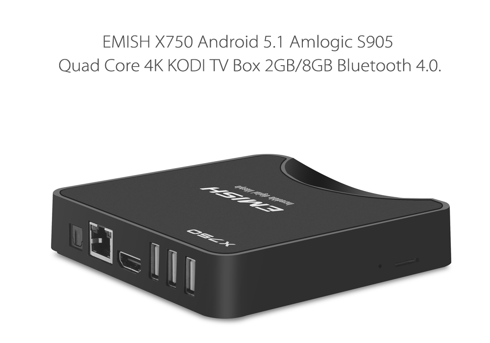 Obtenez une super mise à jour pour votre téléviseur avec la EMISH X750 Android TV Box, avec le support 4Kx2K, Android 5.1 interface, Amlogic S905 Quad Core CPU et plus.