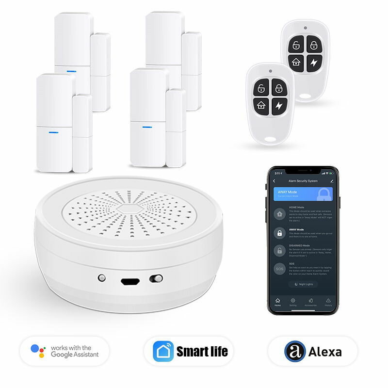Ensemble d’alarme de capteur de porte Tuya WiFi 433MHz Kit de securite domestique Wifi Fonctionne avec Alexa Google Home – Prise UE