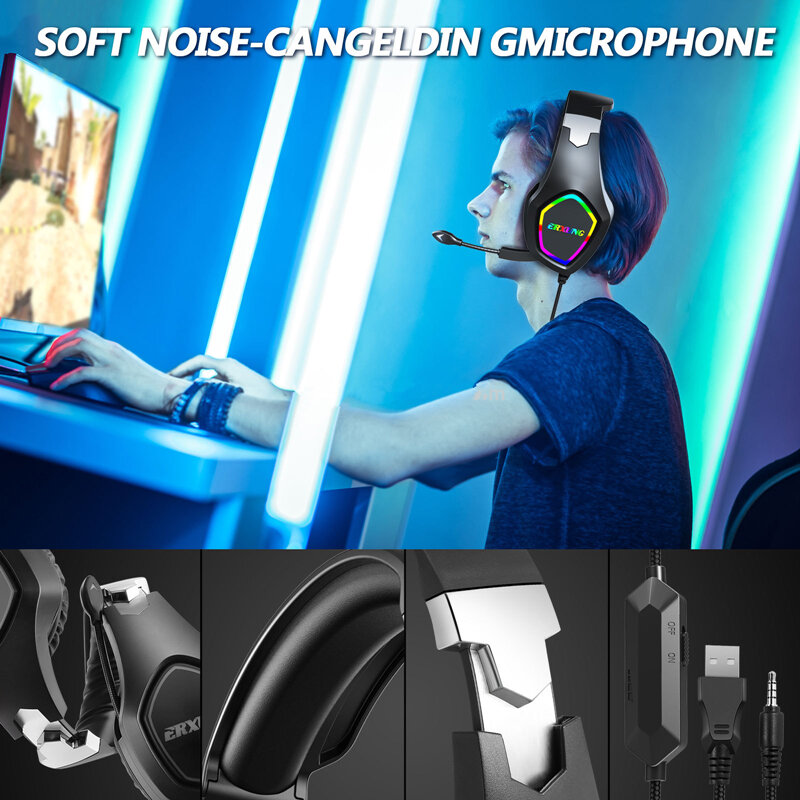 ERXUNG J20 casque de jeu filaire casque stereo casque de jeu avec Microphone pour telephones portables ordinateurs portables pour PS4 – Noir