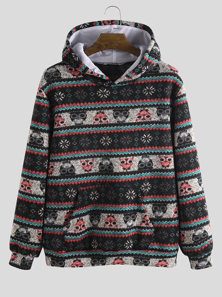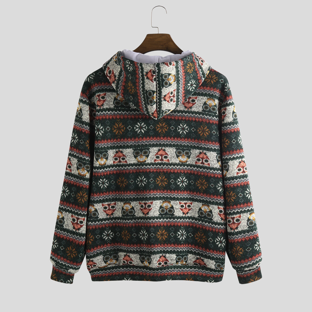 Ethnic Pattern Cartoon Animal Mixed Print Hoodies Sweatshirt – 2XL Blue
