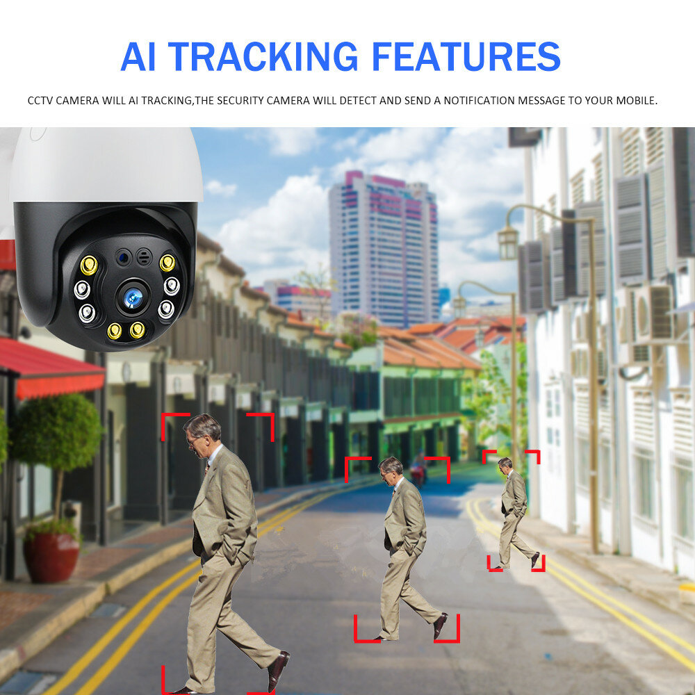 EXQ05-5MP Camera IP WiFi Suivi automatique sans fil Moniteur bebe 5MP Vision nocturne PTZ Vitesse etanche Dome Camera de surveillance PTZ E27 Connecteur de stockage de carte TF