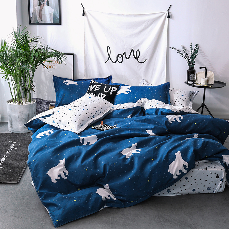 Fashion Double Sided Quilt Cover Pillow Bed Sheet Bedding Set