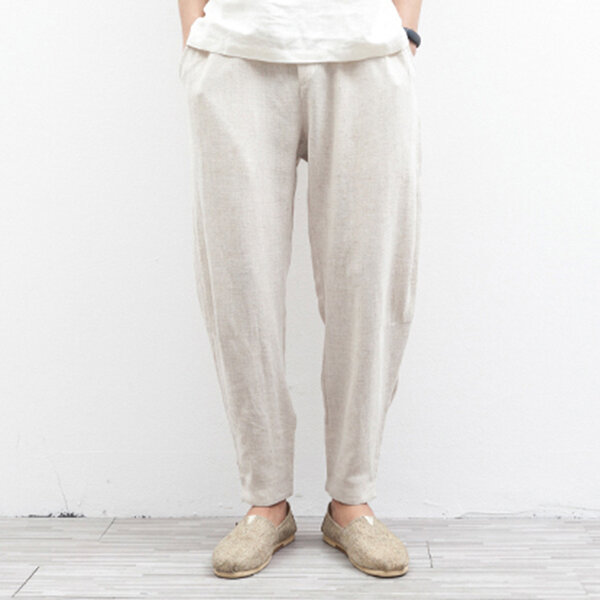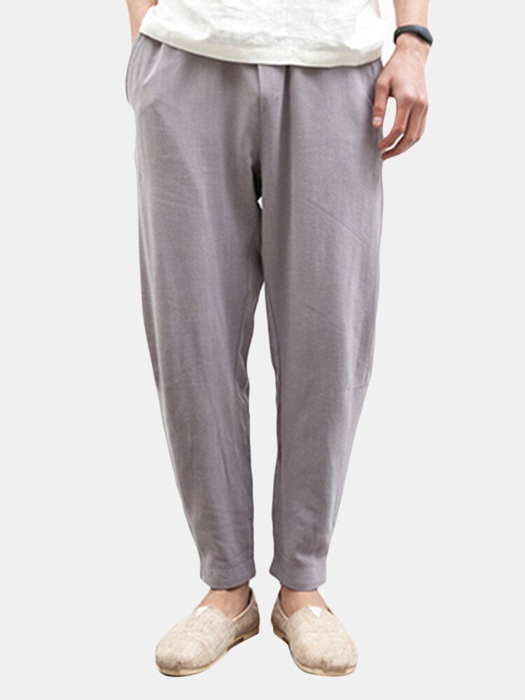 Fashion Loose Linen Cotton Pants – 3XL Gray