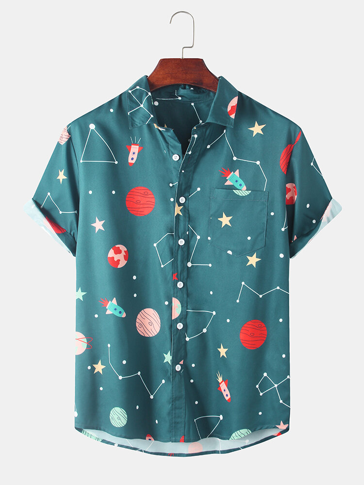Description:Item Type: ShirtsPattern Type: PrintingGender: MenFit Type: FitStyle: Casual,FashionThickness: RegularCollar: Turn Down CollarSeason: SummerDecorations: Pocket,CartoonMaterial: 100% PolyesterSleeve Length: Short SleeveColor: CyanCuff Type: Shirt SleeveOccasion: Leisure,Home,Daylife,Holiday